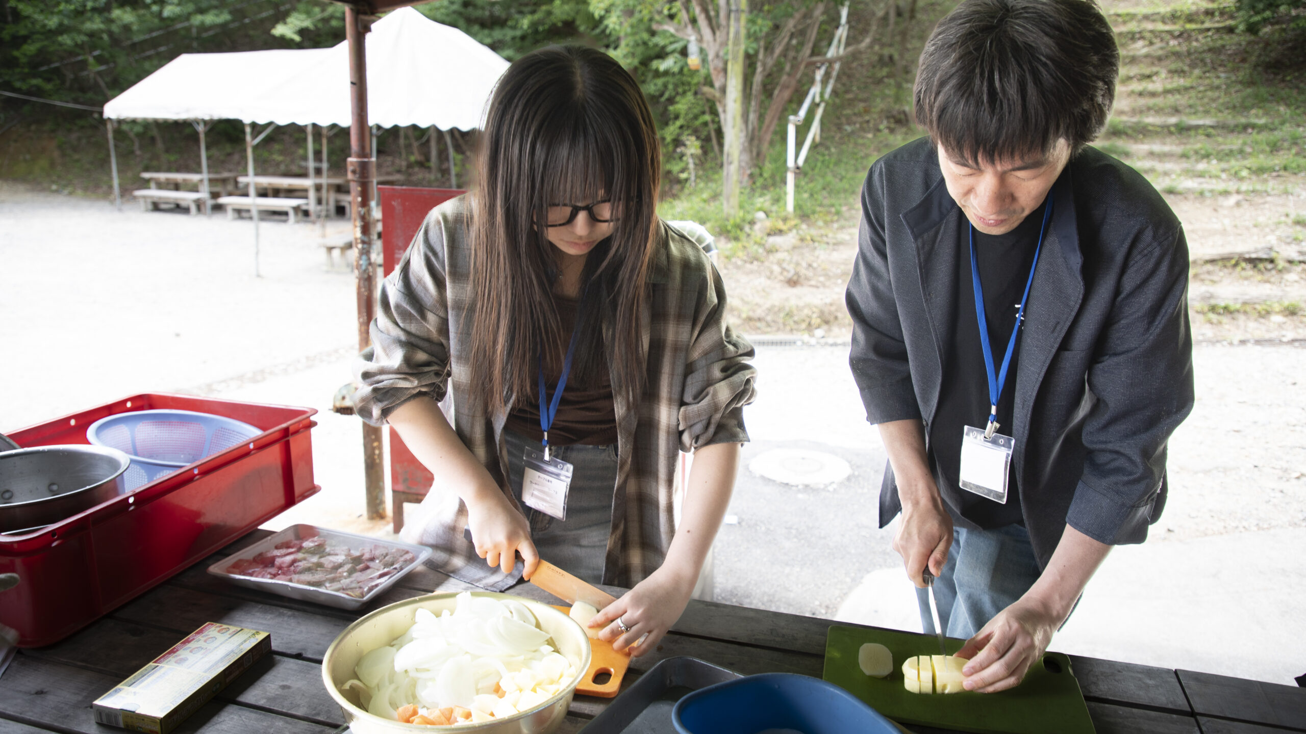 食材争奪ゲームやぶっちゃけトークを交えながら、和気あいあいとカレーを作り、交流を深めました。