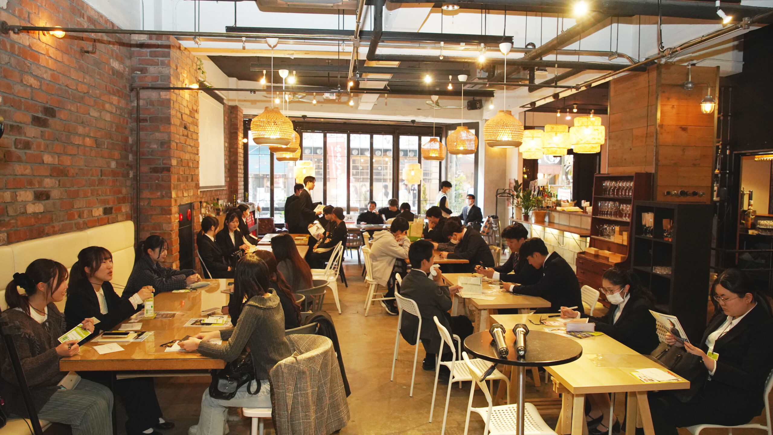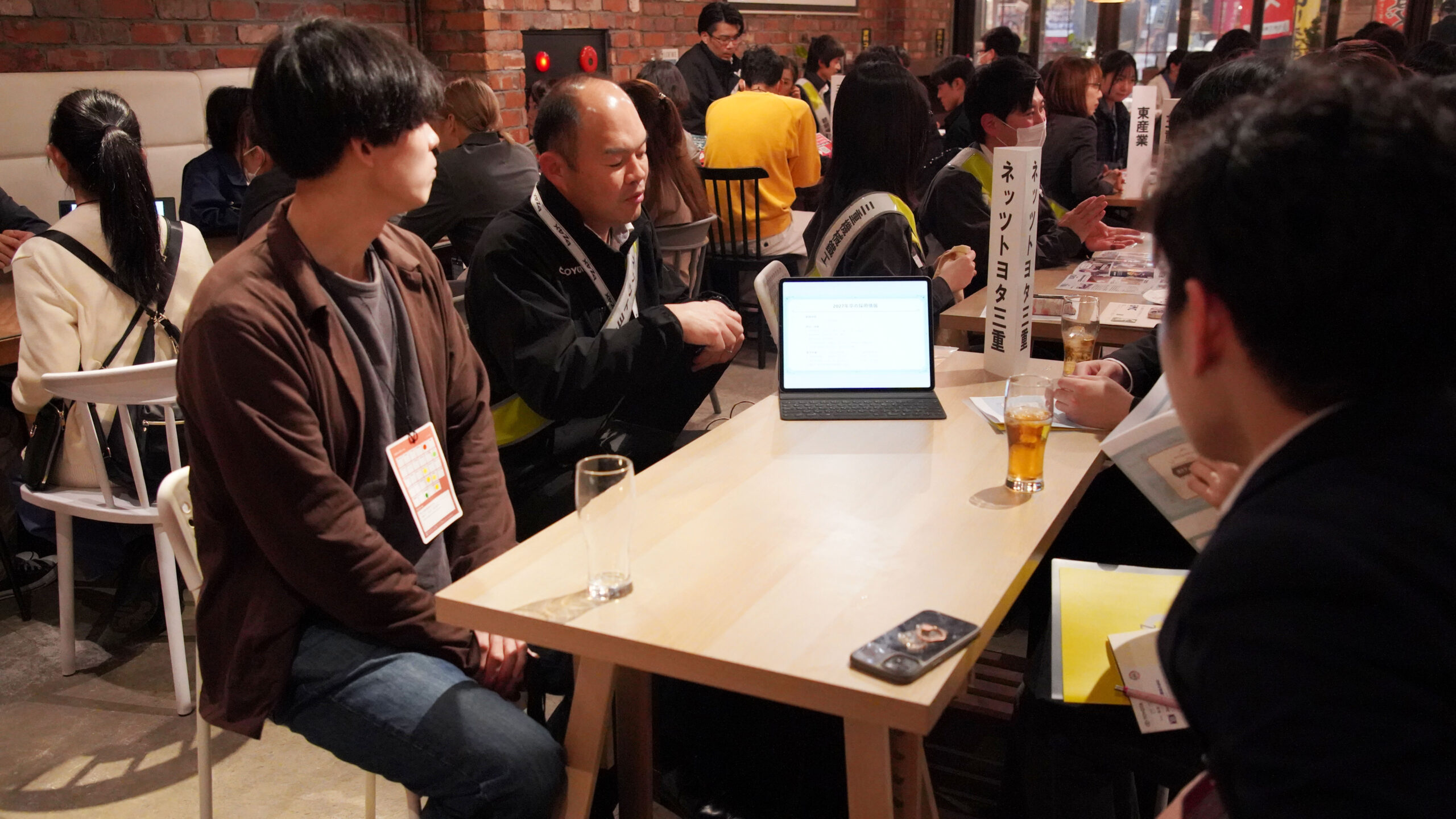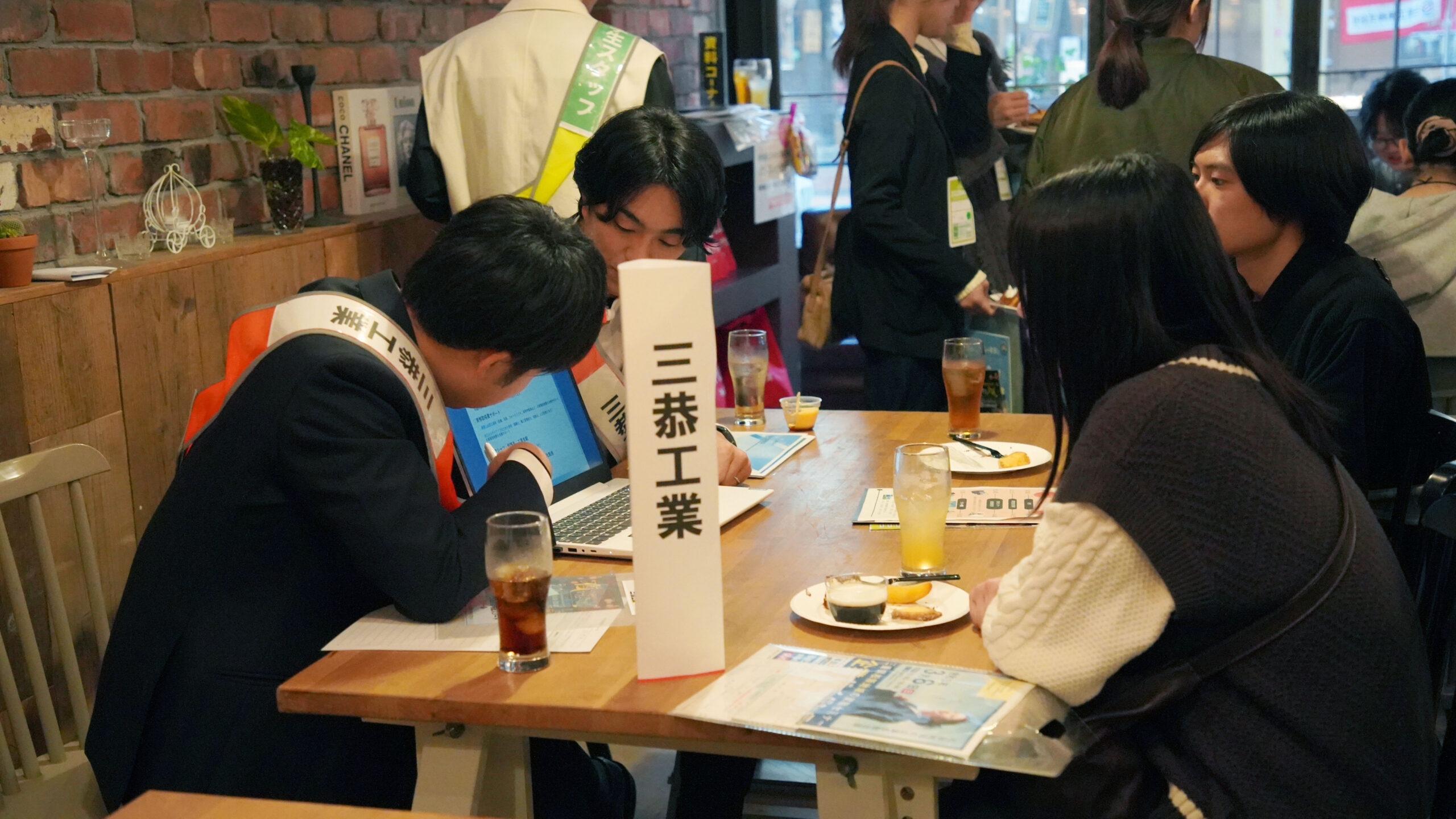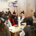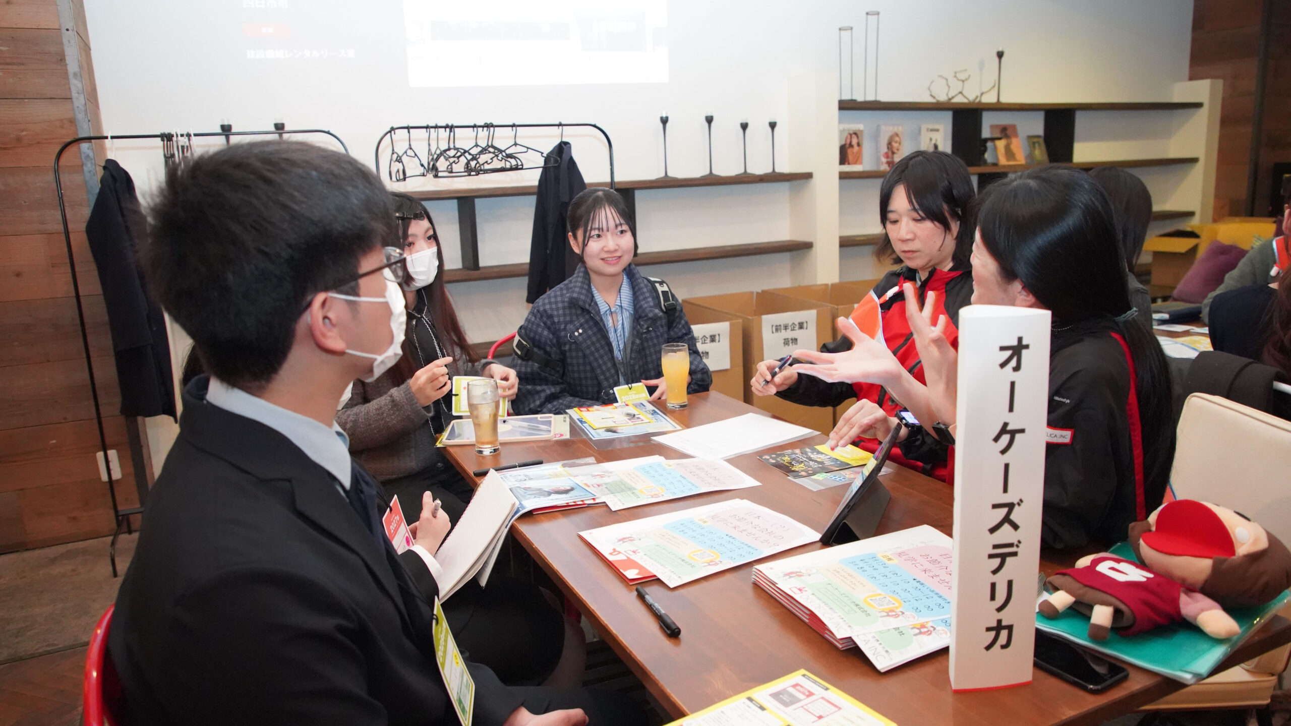 ドリンクやおやつを片手に、リラックスした雰囲気の中で企業の方とじっくり話す姿が印象的でした。