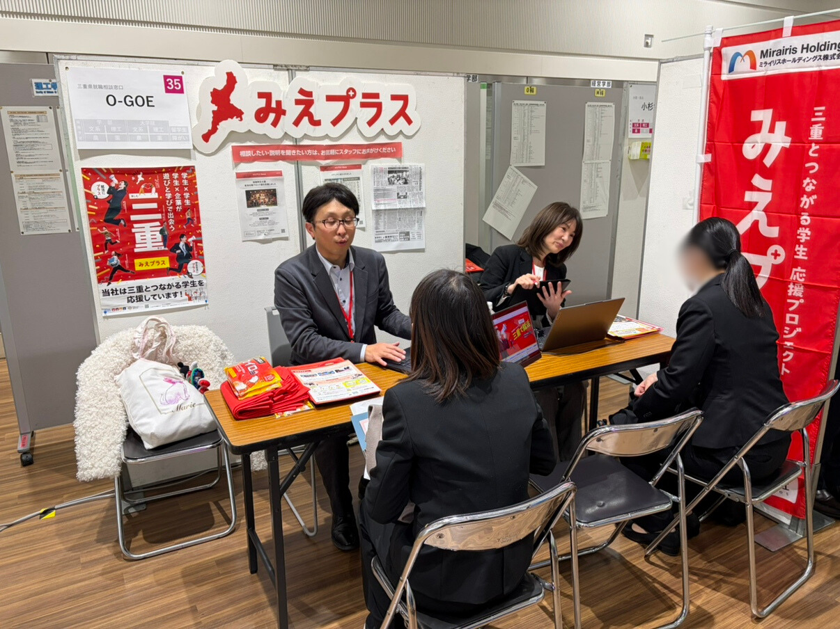学生の皆さまからの就活相談対応や、みえプラスの取り組みについてのご案内を行いました。