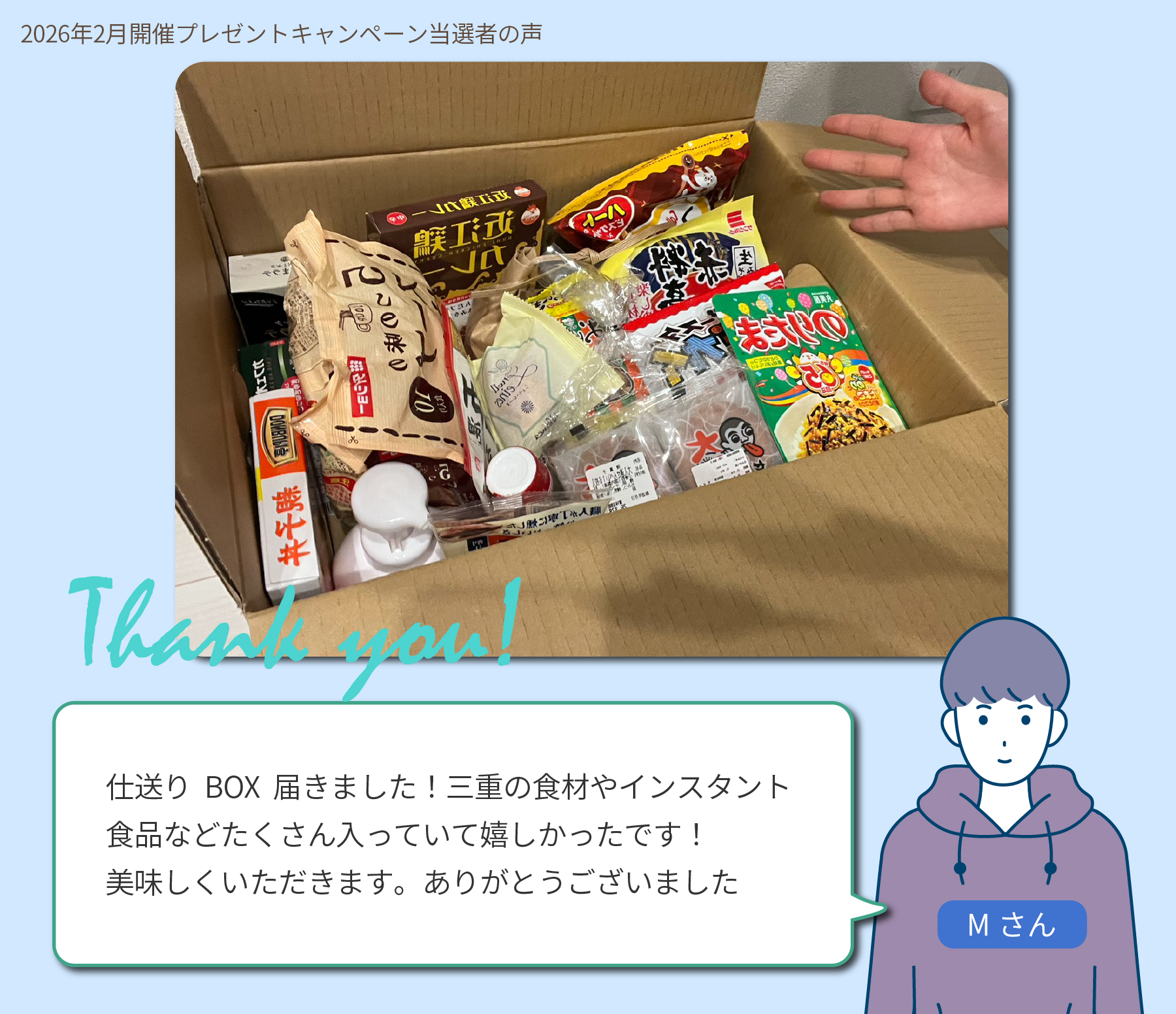 三重ゆかりの商品を含む20点以上の食品・日用品を詰めた仕送りボックスが当たる!!
